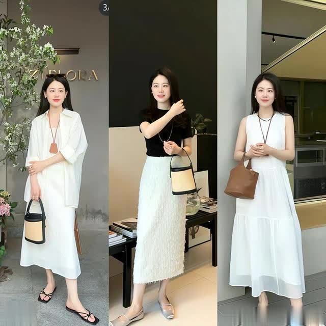 说实话,像这种白色长裙真的很温柔,如果你想要看上去更清爽,你可以尝试这种纯白色的连衣裙搭配或者是选择白色的衬衫配白色半身裙,保持上下色彩统一,这样的穿搭也显得很清爽,而且层次感会非常明显哦。